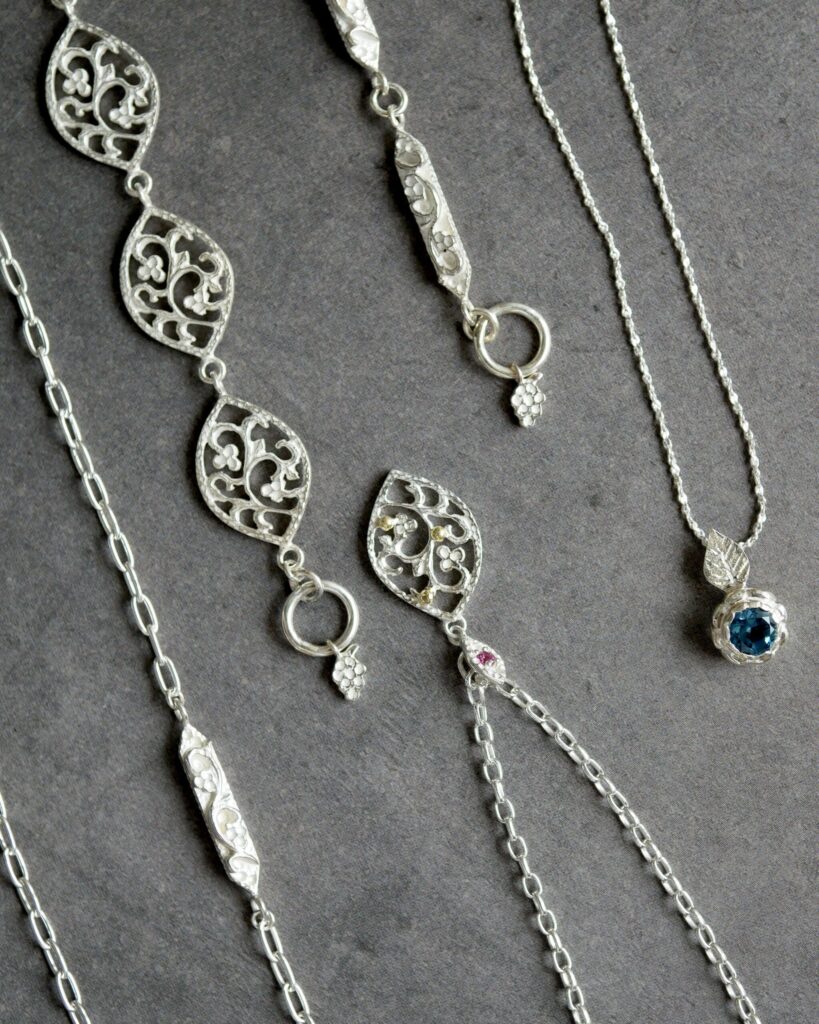 シルバー925と18Kを組み合わせたコンビジュエリーは、