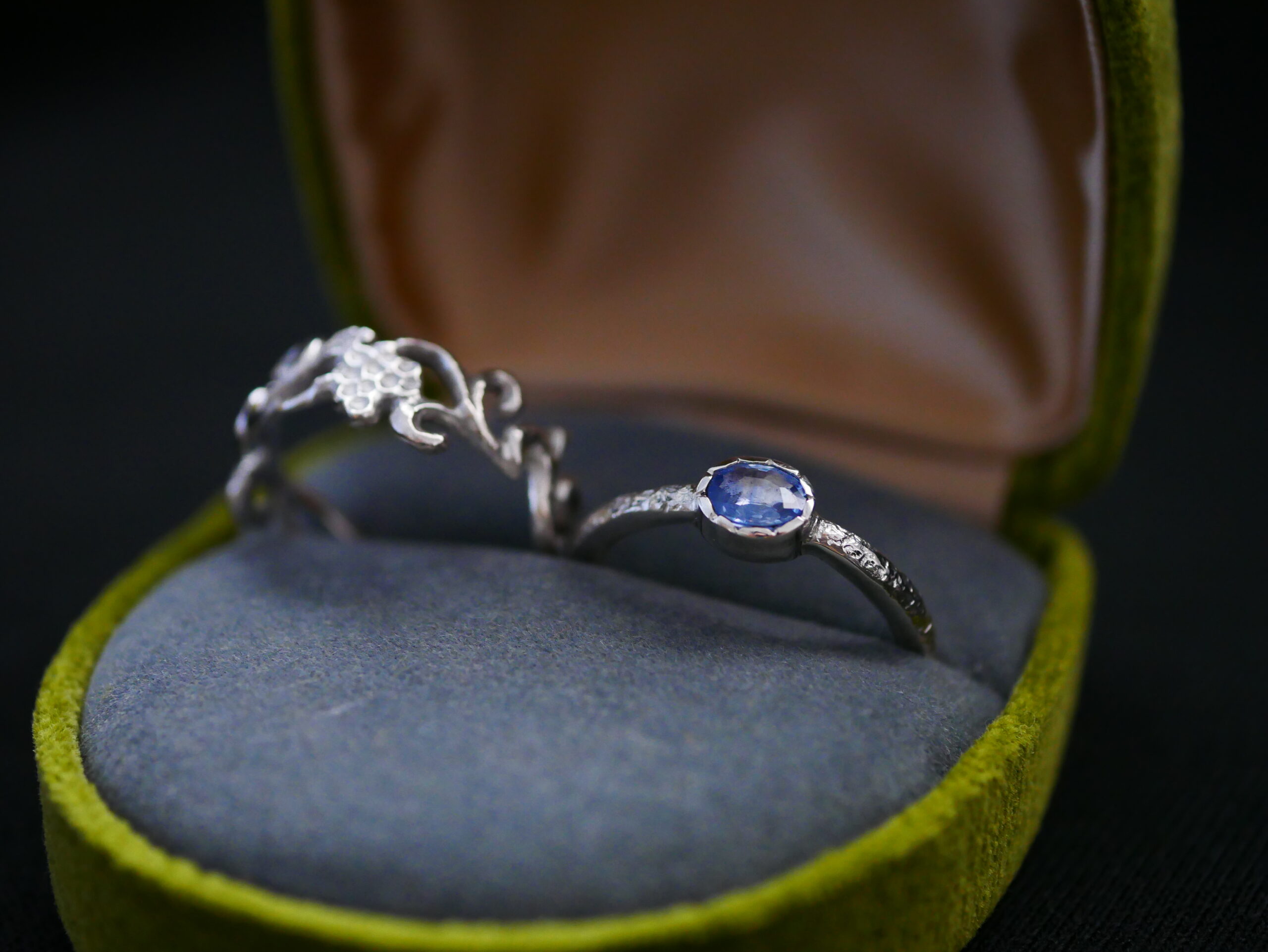 定番のブドウをモチーフとしたシリーズ、中幅のタイプのリング。